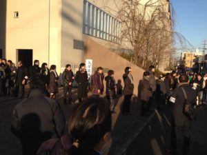 正門に続く道には、受験生の親子が長蛇の列をなし