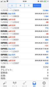 FX自動売買ツールの結果(9月26日)